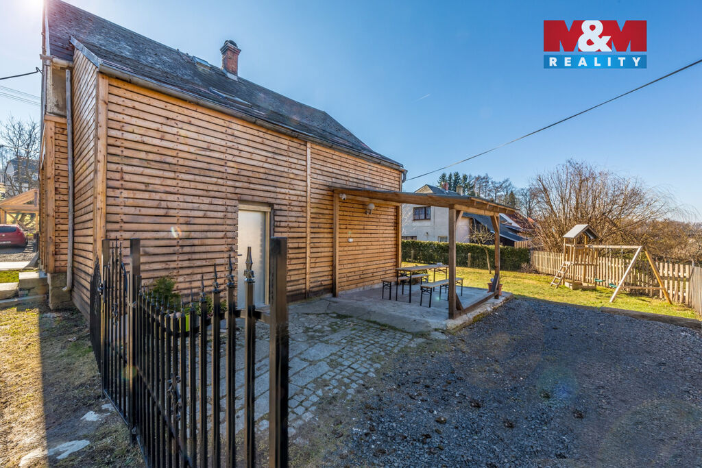 Na pozemku nechybí parkovací místo, terasa s posezením ani prostor pro dětské hry.