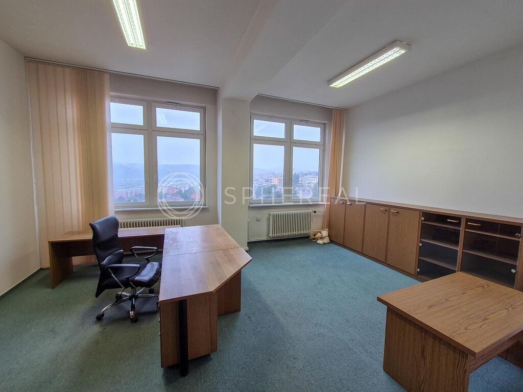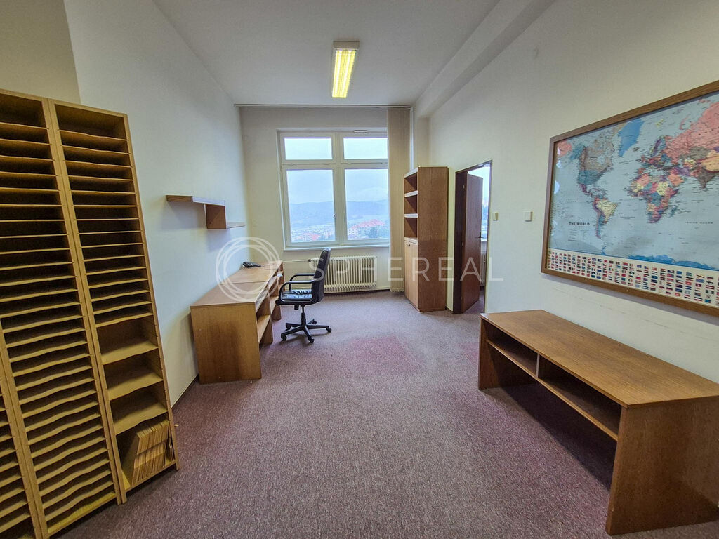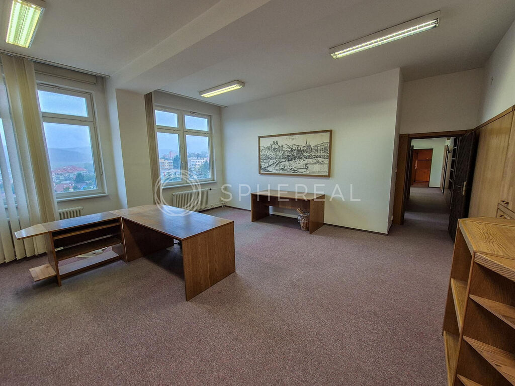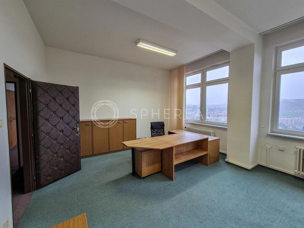 Prostory se nachází v 9. NP s krásným výhledem do okolí a jsou rozděleny do dvou větších a jedné menší kanceláře, vstupní místnosti a kuchyňky. Místnosti jsou vybaveny nábytkem, koberci a žaluziemi a připraveny k okamžitému nastěhování.