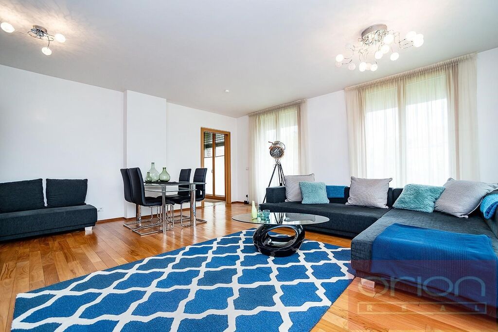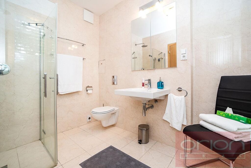 Nabízíme k pronájmu luxusní byt 3+1 s terasou v 1. patře rezidenční vily ve vyhledávané lokalitě Praha 6 - Ořechovka. Nezařízený byt má celkovou plochu 124 m2 a nabízí velkou vstupní halu, prostorný obývací pokoj s jídelnou a vstupem na terasu, plně zařízenou kuchyň se vstupem na terasu, 2 ložnice, z toho jedna s vlastní koupelnou se sprchovým koutem a toaletou, druhá koupelna s vanou, sprchovým koutem a toaletou, samostatnou toaletu, technickou místnost. K vybavení bytu patří kvalitní dřevěné podlahy, vestavěné skříně, pračka, sušička, vytápěné podlahy v koupelnách, venkovní elektrické žaluzie, plynové topení, klimatizace, alarm, videotelefon. V ceně nájmu je jedno parkovací stání v podzemní garáži, druhé parkovací místo je možné pronajmout za extra cenu.