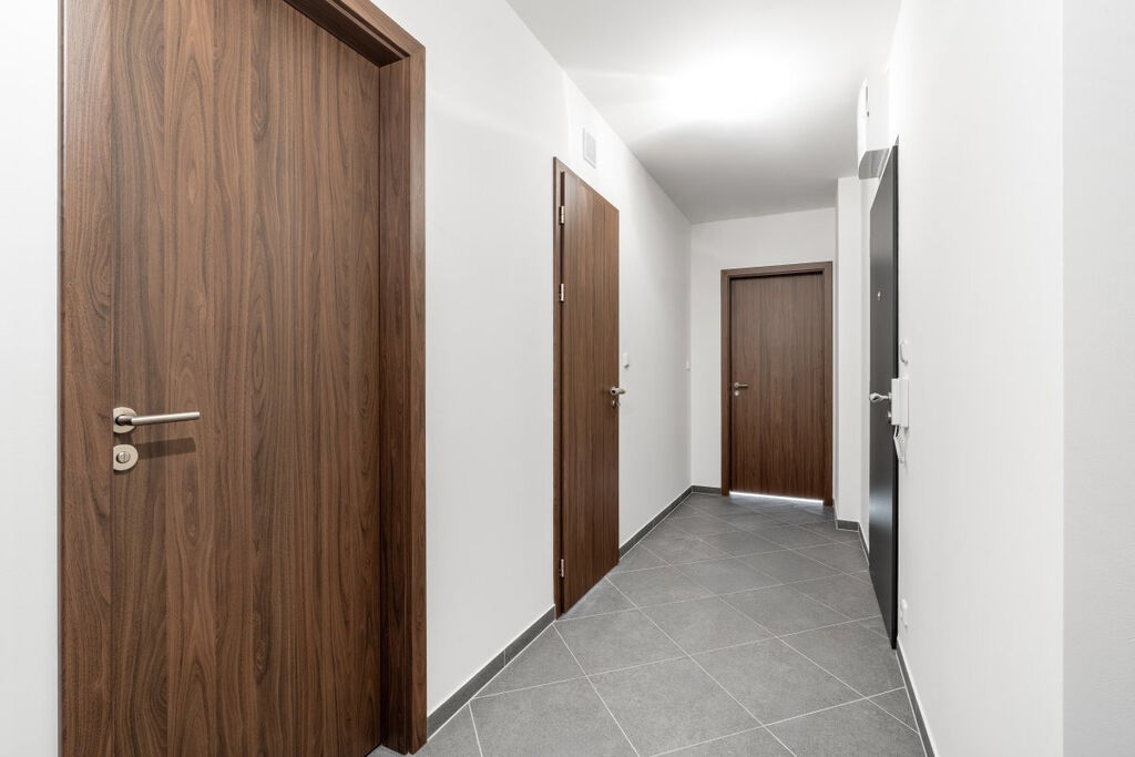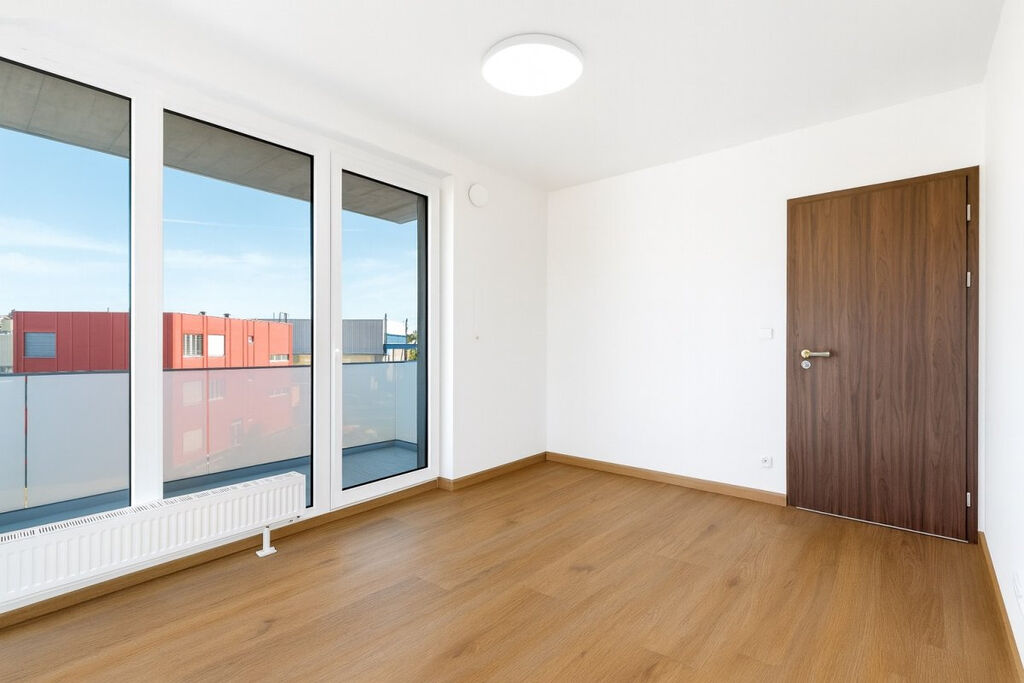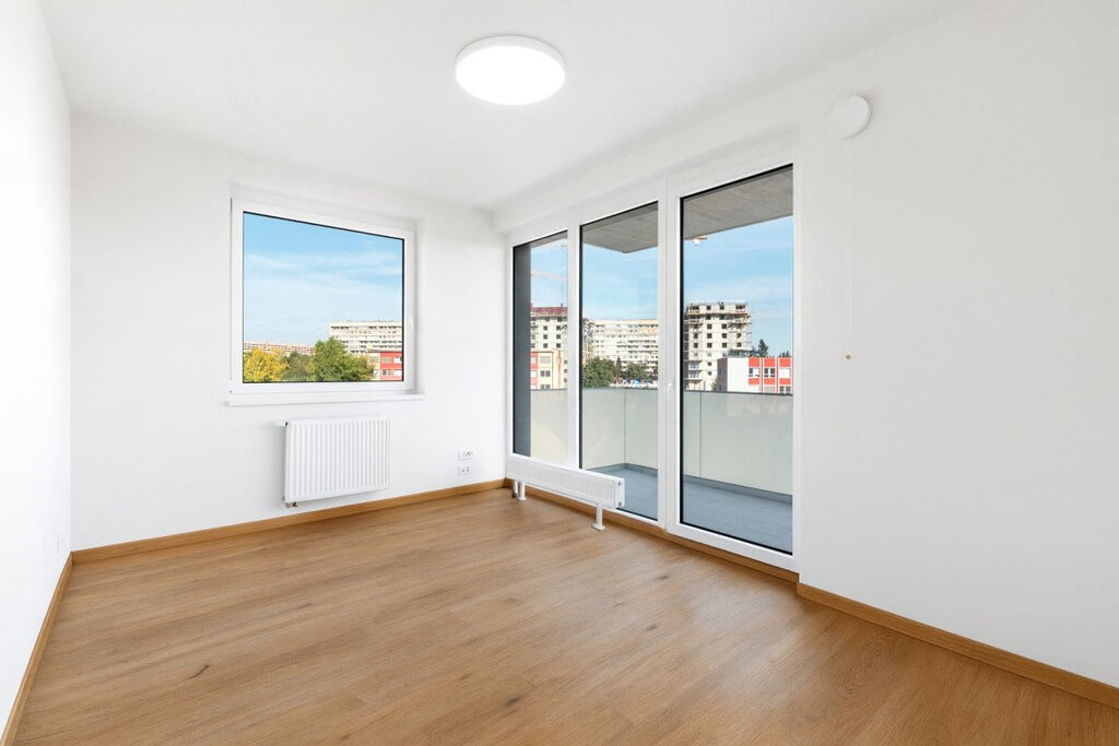Byt se nabízí nevybavený, avšak s kompletně zařízenou kuchyňskou linkou včetně varné desky, trouby, digestoře, myčky a vestavěné pračky se sušičkou. Výhodou je také praktická komora / šatna, která poskytuje dostatek úložného prostoru.