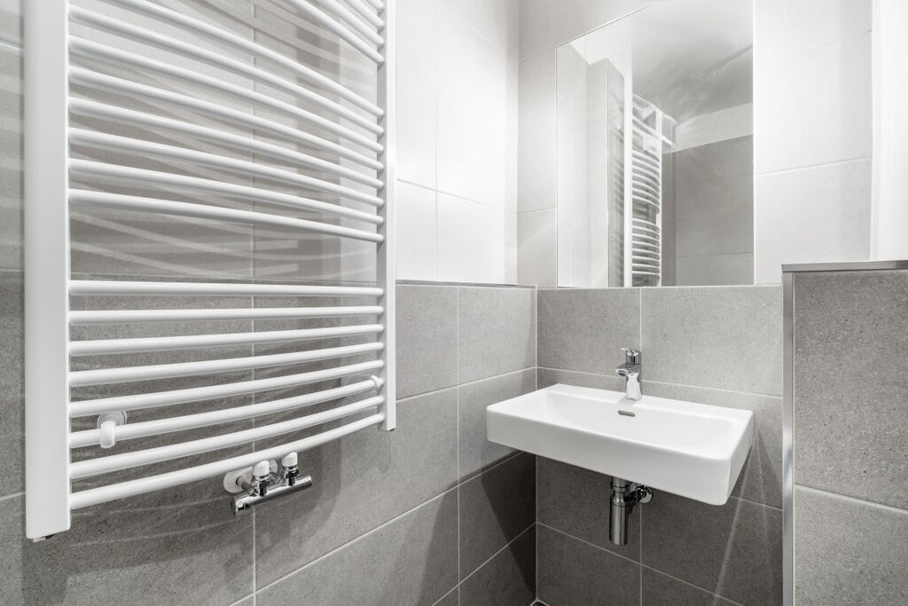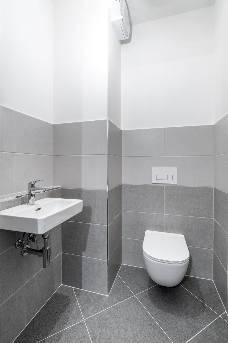 V koupelně se nachází vana, toaleta je oddělená. Z obývacího pokoje i ložnice je přímý vstup na prostornou terasu, která nabízí příjemné venkovní posezení. Součástí bude také vestavěná pračka se sušičkou.