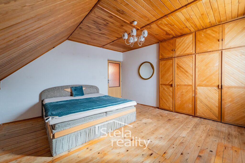 Nabízíme k prodeji rodinný dům o dispozici 5+1 s vestavěnou garáží, užitná plocha 125 m2, pozemek 2344 m2, obec Moravskoslezský Kočov, okr. Bruntál. Jedná se o samostatný, patrový, podsklepený dům se sedlovou střechou z roku 1988. V 1.NP se nachází zádveří, předsíň, obývací pokoj s krbovými kamny, kuchyň, pokoj a WC. Ve 2.NP jsou 3 pokoje, koupelna a chodba se schodištěm. V podzemním podlaží je garáž, kotelna, chodba a tři technické místnosti. V podkroví neobytná půda.