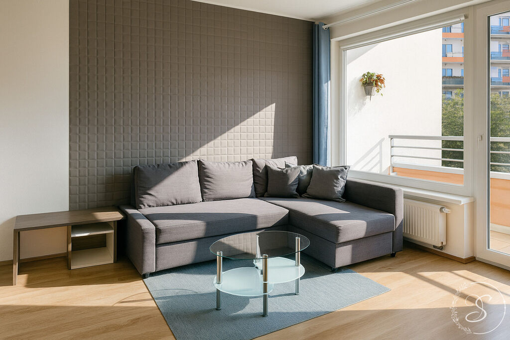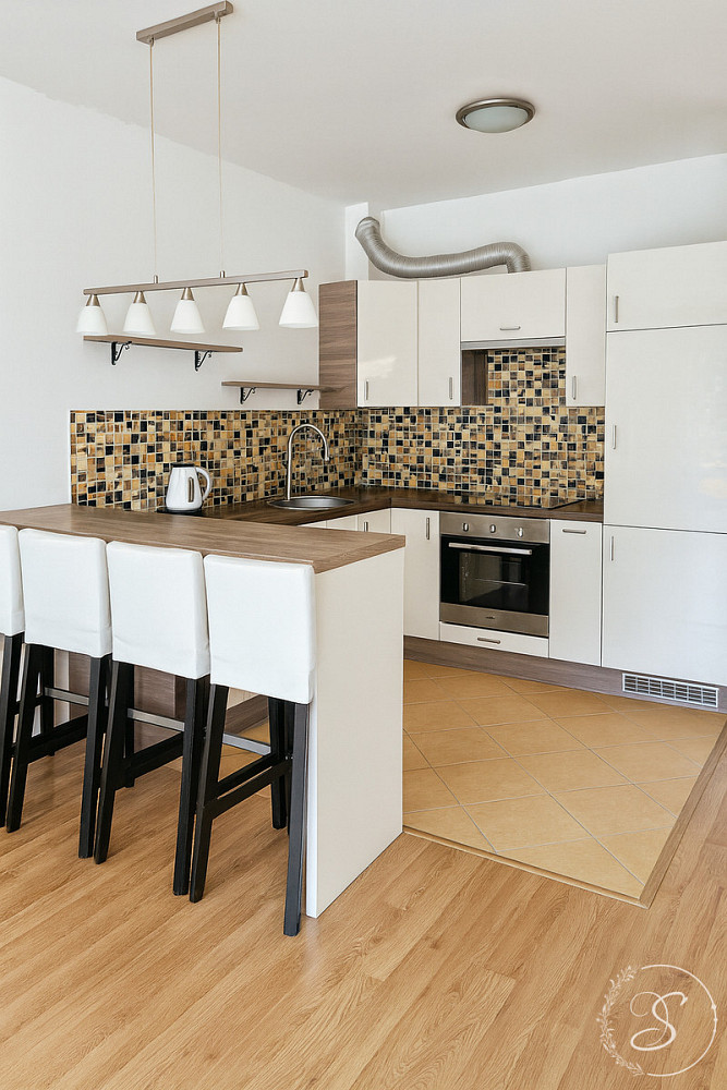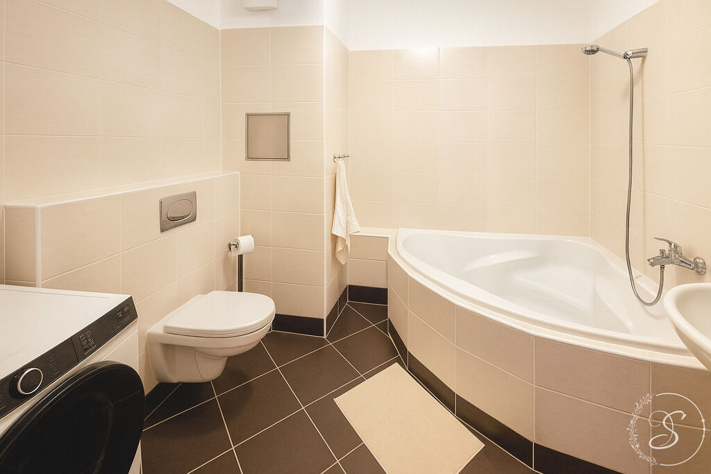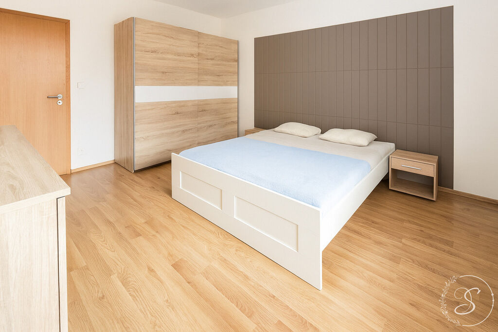 Byt prošel čerstvou rekonstrukcí a je kompletně zařízen. Dispozici tvoří obývací pokoj s kuchyňskou linkou vybavenou spotřebiči (lednice, varná deska, trouba, digestoř), pohodlná sedací souprava, ložnice s manželskou postelí a prostornou šatní skříní. Koupelna je vybavena vanou a pračkou. V předsíni se nachází velký botník a vestavěný šatník. Byt je nově vymalován, spotřebiče po servisu a připraven k okamžitému nastěhování bez nutnosti dalších investic.