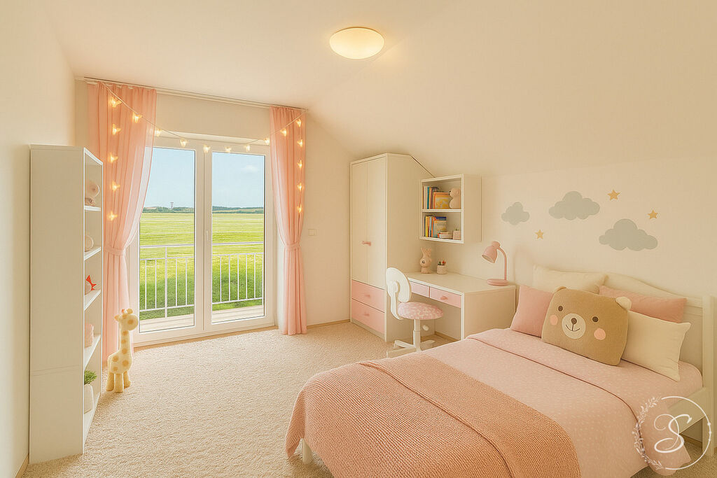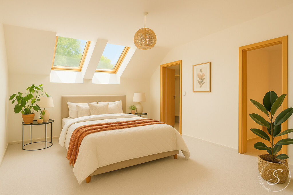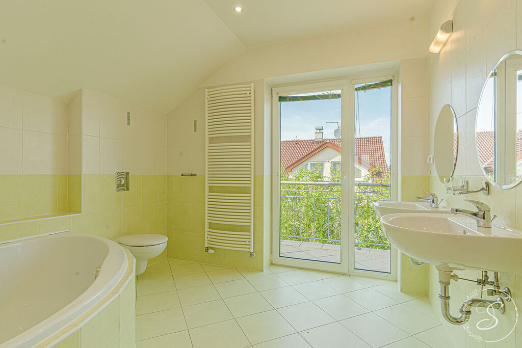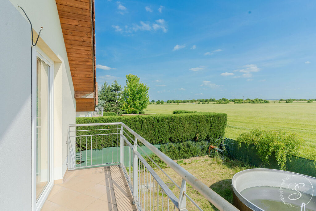 Do patra vede široké schodiště, které umocňuje pocit prostornosti a vzdušnosti. Horní podlaží nabízí čtyři samostatné ložnice, z nichž tři mají vlastní balkon. Hlavní ložnice disponuje vlastní koupelnou a šatnou, dále je zde druhá koupelna s toaletou a samostatná šatna.