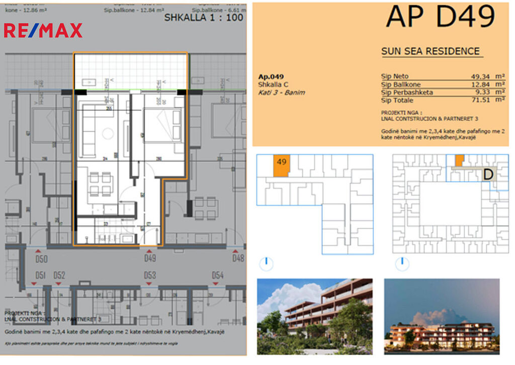 Nabízíme k prodeji moderní byt o velikosti 2 + kk v prestižní lokalitě Obce Golem, okres Kavajë v developerském projektu před dokončení. Termín dokončení stavby je 09/2026. Tato cihlová novostavba se nachází ve třetím nadzemním podlaží pětipodlažního objektu a nabízí celkovou plochu 62,18 m², z toho užitnou plochu 49,34 m². Součástí bytu je prostorná terasa o velikosti 12,8 m², ideální pro relaxaci či venkovní posezení.