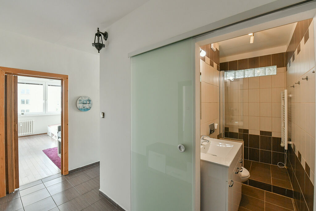 Koupelna je vybavena sprchovým koutem. Stoupačky jsou již v plastu, osazené měřiči teplé i studené vody. Ty jsou v bytě i na ústředním dálkovému topení. Nízké provozní náklady jen ve výši 1.628 Kč/měs. (v tom je již zahrnut fond oprav 516 Kč), dále mají nájemníci nastavené své zálohy ve výši 2.470 Kč/měs.