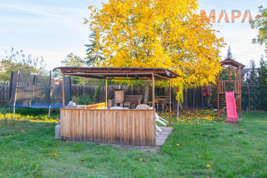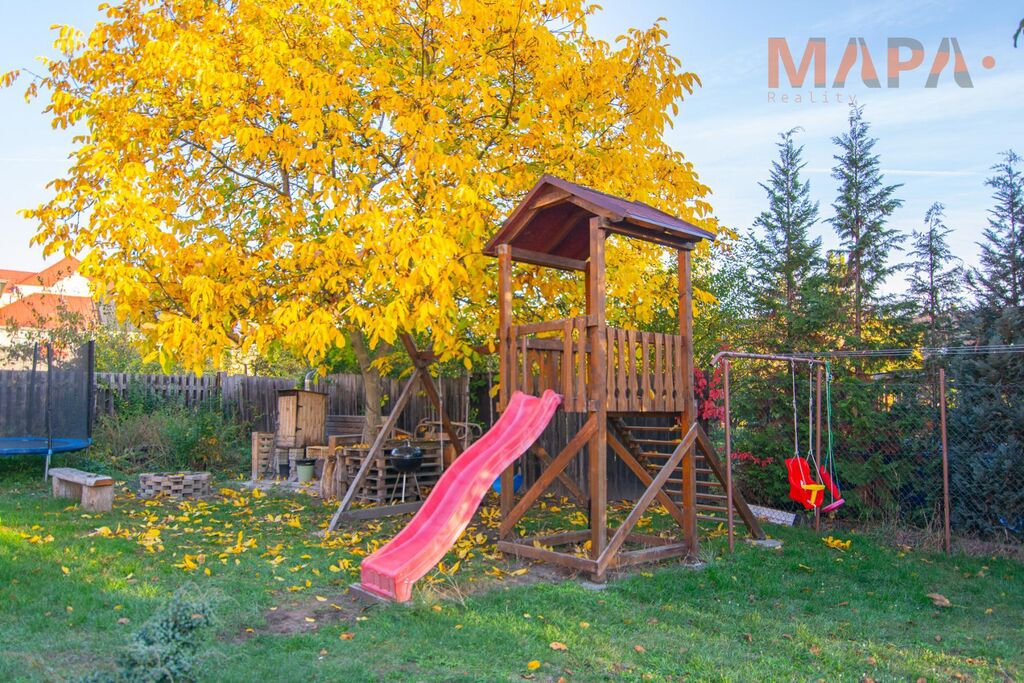 vlastní oplocený dvůr s elektrickou bránou, ideální pro posezení nebo grilování,