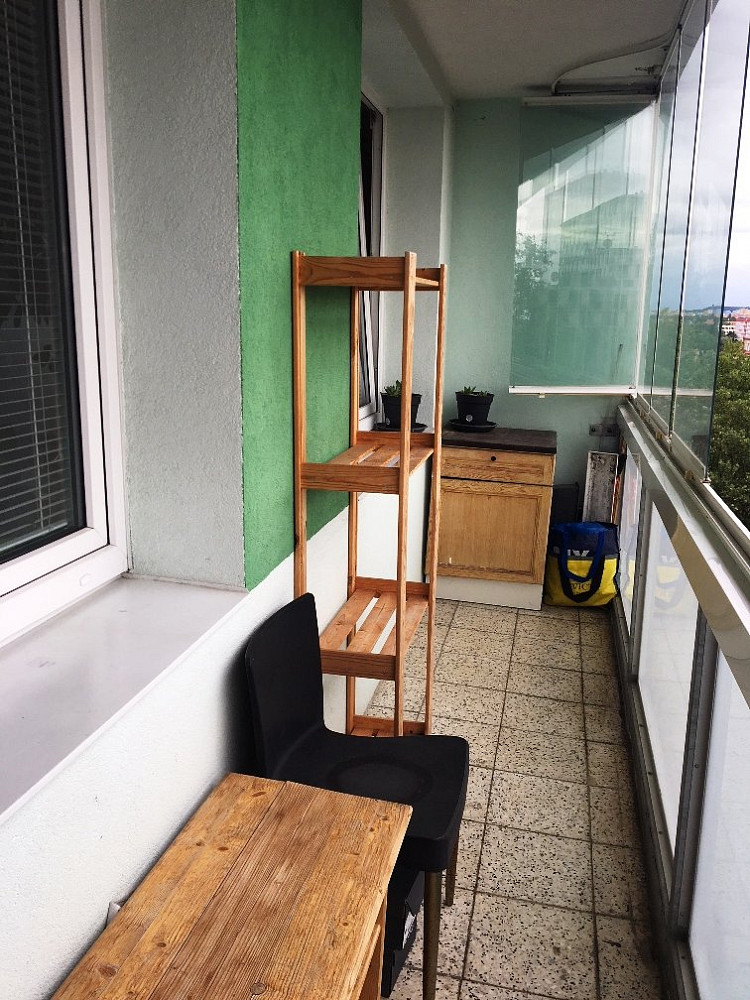 Dlouhodobý pronájem zařízeného a zcela nekuřáckého bytu 1+kk s velikou zasklenou lodžií (6m²) v 5. nadzemním podlaží domu - vyhledávaná a atraktivní lokalita PRAHA 4 - Podolí - v těsném sousedství rozlehlého parku "Na Pankráci". Bytový dům (celkem 23 bytů vchod) se nachází již na samém okraji sídliště - výhled na Pražský hrad, orientace celého bytu je na jihozápad. Byt je po celkové kompletní rekonstrukci - koupelna nově řešena prostorným zděným sprchovým koutem se skleněnou zástěnou, hydromasážní sprcha, mramor vanička. Součástí je kvalitním vybavení - k dispozici vestavěná šatní skříň se zrcadlem, zánovní pračka, nová nerez lednice s mrazákem, plynový sporák, žaluzie, garnyže, osvětlení - úsporné žárovky, stropní větrák, přídavný zámek na dveřích. Nábytek - komody, tv police, stolek, sedací souprava, nové dvojlůžko, botník, regály v komoře - umístěné v těsném sousedství bytu