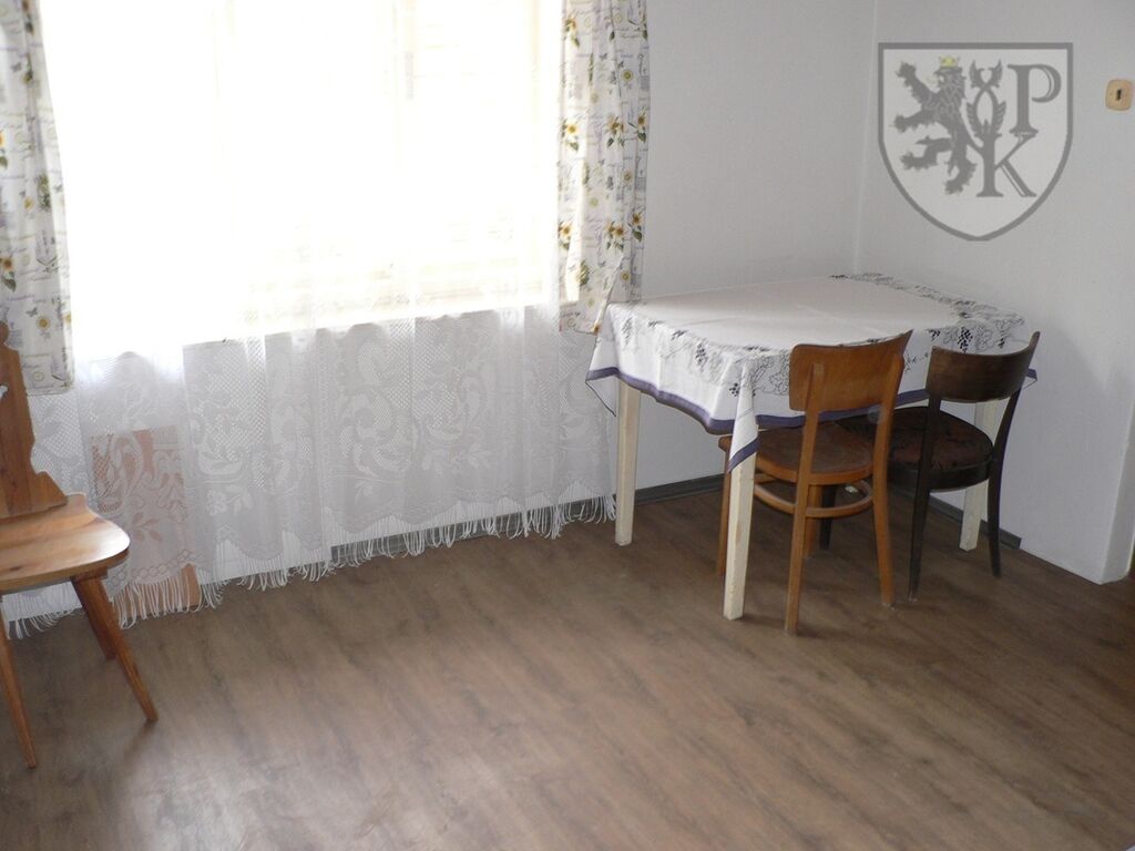 Obytná část 2+1 (cca 18, 16 + 20 m2), chodba, koupelna, komora. V podkroví letní pokoj – špatný stav. Vpravo na obytnou část kolmo navazuje sklad s domácí vodárnou a bývalý chlév (cca 12 m2). Naproti obytné části stojí samostatně bývalá stodůlka upravená na garáž (cca 35 m2) a dřevěná kolna. Ve dvoře suchý záchod.