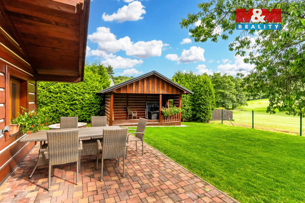 Nabízíme k prodeji krásnou dřevostavbu v klidné části obce Heřmanice v Podještědí. Tato unikátní chalupa se nachází přímo u golfového hřiště Resortu Malevil a je ideální volbou pro milovníky golfu nebo pro ty, kteří hledají bydlení obklopené zelení. Nemovitost nabízí 3 místnosti rozložené na dvou nadzemních podlažích a otevřené patro, které podtrhuje vzdušnost a moderní design interiéru. Kvalitní materiály a pečlivé zpracování zajišťují komfort a dlouhou životnost stavby. Vzhledem k bezprostřední blízkosti golfu se nabízí i možnost investice jako pronájem chalupy lukrativní klientele. Celková užitná plocha činí 95 m² a je situována na pozemku o rozloze 965 m². K prodeji i veškeré vybavení za cenu 70.000,- Kč. Výborný stav nemovitosti umožňuje okamžité nastěhování. Vychutnejte si ranní kávu na terase nebo balkoně s výhledem na precizně udržované golfové hřiště. Nechte se okouzlit tímto jedinečným místem a přijeďte se sami přesvědčit do srdce Lužických hor.