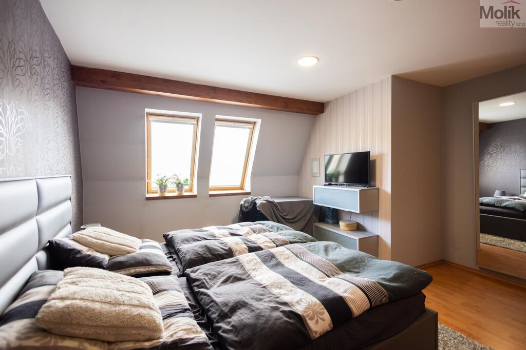 V horní části domu se nachází bytová jednotka dispozičně řešená jako 5+1.