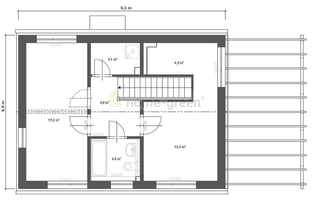Dům dodavatele RD Rýmařov - KUBIS 99 je ideální dům pro rodiny s dětmi. V přízemí se nachází kuchyňský kout spojený s obývacím pokojem, který umožní přímý vstup na slunnou terasu. Nechybí tu ani samostatný pokoj a koupelna. V podkroví se pak nachází další 3 prostorné pokoje a praktická technická místnost. Samozřejmostí je i druhá koupelna. Půdorys o rozměru 9,34 × 6,91 m vám v tomto patrovém rodinném domě poskytne téměř 100 m² podlahových ploch. Navíc vám KUBIS 99 nabízí možnost rozšíření z dispozice 4+kk na 5+kk. Vedle domu se skvěle hodí i dřevěná pergola, která poslouží jako stání pro auto. Tepelné čerpadlo je v ceně domu. Čerpadlo vzduch - vzduch v zimě dům vyhřeje, v létě zase ochladí. Fotovoltaická elektrárna je v ceně domu. Systém ON GRID s akumulací do zásobníku TUV: využívá sluneční energii pro ohřev užitkové vody v 200 litrovém zásobníku. Základová deska je v ceně domu.