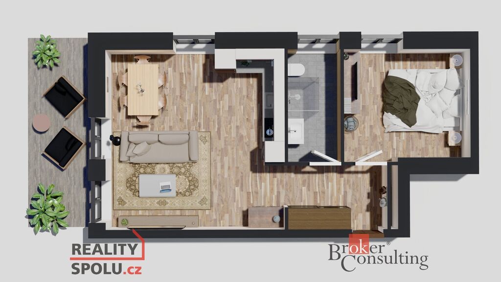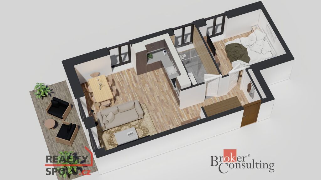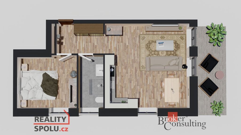 K bytu náleží terasa o výměře 26,11 m² a menší zahrádka pro příjemné posezení na čerstvém vzduchu.