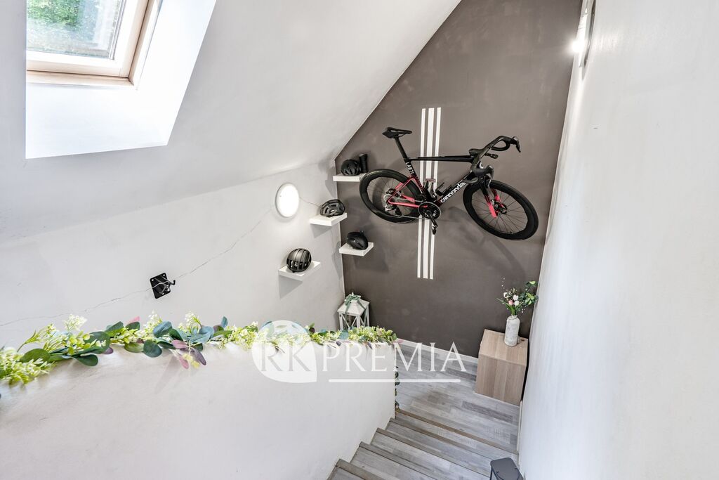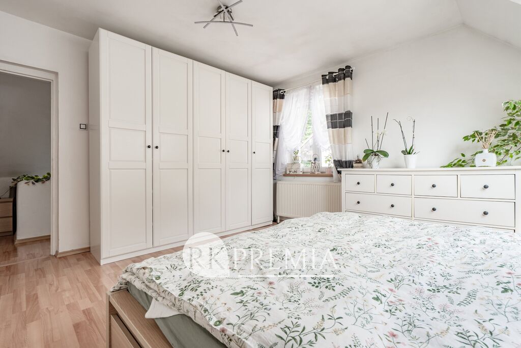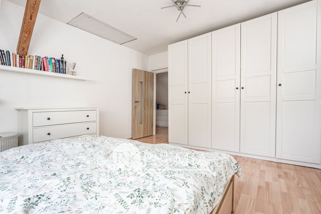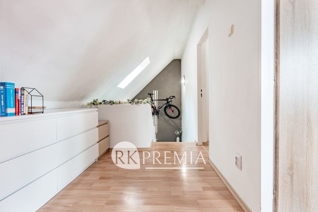 2. podlaží domu je noční část – ložnice, dětský pokoj a menší místnost, která může sloužit jako kancelář nebo šatna.