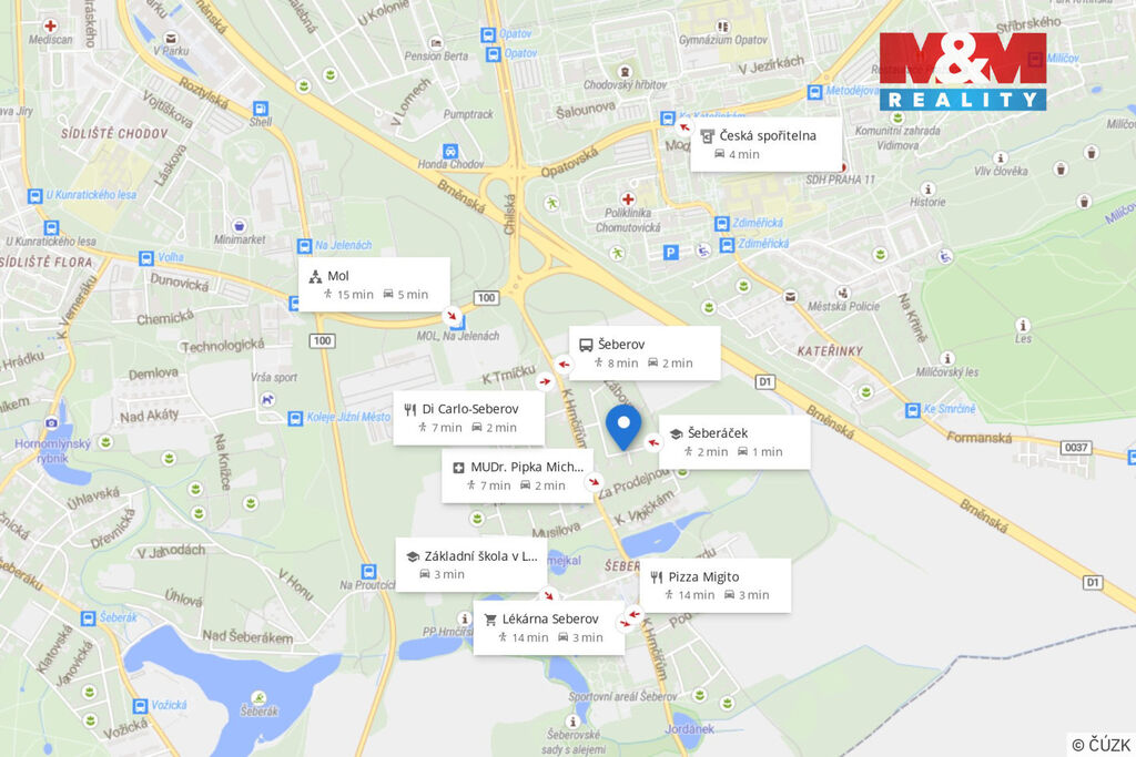 Prodej útulného rodinného domu, který byl zkolaudován v r. 2009, s garáží, zahradou, zahradním domkem a krytým posezením o celkové ploše 537 m2. Dispozice 4+kk: v přízemí je obývací pokoj s kuchyňským koutem, prostorná šatna, koupelna s parním sprchovým koutem, toaletou a komora. V patře jsou tři ložnice, ze kterých je vstup na terasu, koupelna s rohovou vanou a samostatná toaleta. Podlahové vytápění zajišťuje elektrický kotel, teplou vodu bojler, internet wifi a satelit. Praktický centrální vysavač, alarm a v patře je klima zn. Toshiba. Parkování v garáži pro jeden automobil a dvě místa na zpevněné ploše na pozemku. Vjezd vraty s pojezdem. Samozřejmostí je veškerá občanská vybavenost. Ze zastávky autobusu, která je vzdálena 5 min chůze, je to jedna stanice na metro Opatov. Snadno dostupná D1. Výhodou je blízkost krásné přírody - Kunratický les, Milíčovský les s rybníky i známá Hostivařská přehrada. Neváhejte si domluvit prohlídku tohoto útulného domu.