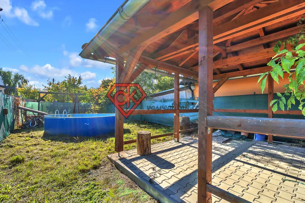 - zahrada s pergolou a bazénem, která je ideální pro letní posezení, grilování nebo odpočinek po práci