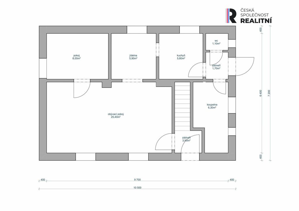 V 1 podkrovním patře se nacházejí dva pokoje (vybaveny radiátory) a jeden menší otevřený prostor.