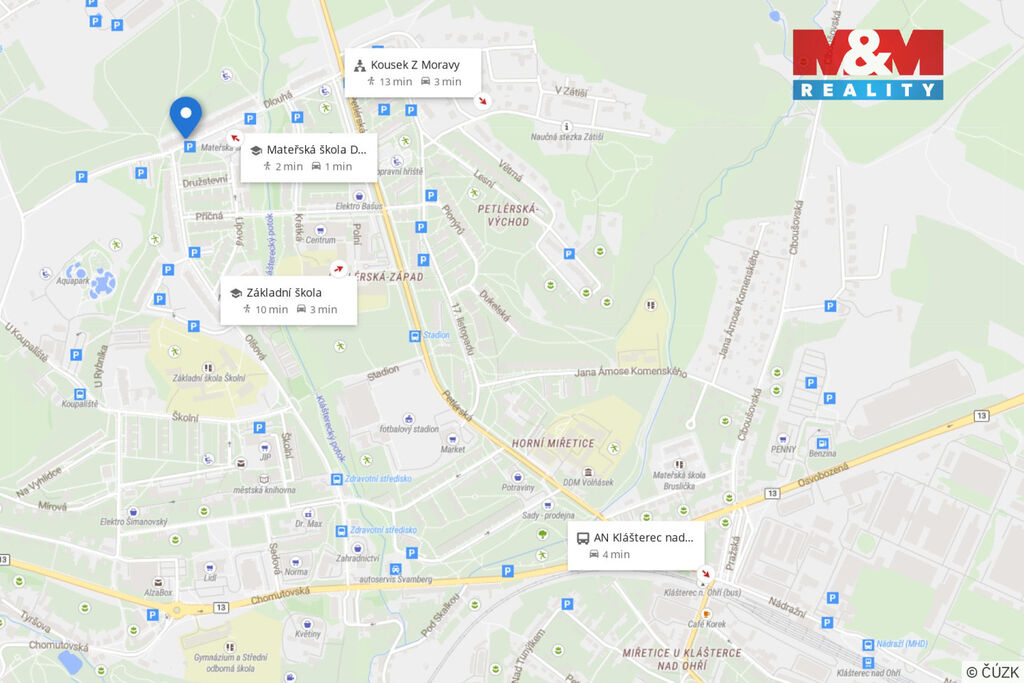 Nabízíme k pronájmu prostorný byt 3+1 o užitné ploše 72 m² v klidné části Klášterce nad Ohří. Tento byt se nachází na 7. podlaží osmipodlažního domu s výtahem. Nabízí ideální kombinaci klidu na okraji obce a dobré dostupnosti do centra. Je v dobrém stavu a je připraven k okamžitému nastěhování, má nové vstupní dveře. Disponuje čtyřmi místnostmi, které zahrnují obývací pokoj, dvě ložnice, k jedné náleží lodžie) a samostatnou kuchyň. Na jižní straně jsou instalovány předokenní žaluzie. K bytu lze užívat také sklepní kóji, což poskytuje dostatek úložného prostoru. V okolí je veškerá občanská vybavenost, včetně obchodů, škol a sportovních zařízení. Ideální volba pro rodiny i jednotlivce hledající pohodlné bydlení v příjemné lokalitě. Součástí pronájmu nejsou vyobrazené elektrospotřebiče (lednička, pračka, myčka, mikrovlnka), které patří stávajícímu nájemníkovi. Neváhejte a domluvte si prohlídku ještě dnes!