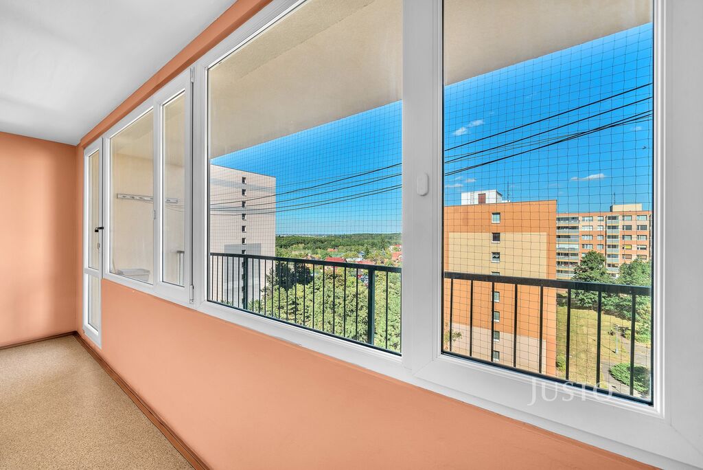Byt je světlý a jeho velikost je 42,2 m² + sklep 1,2 m². Velkou výhodou tohoto bydlení je, že můžete využívat velkou lodžii ,která je na patře přes chodbu.