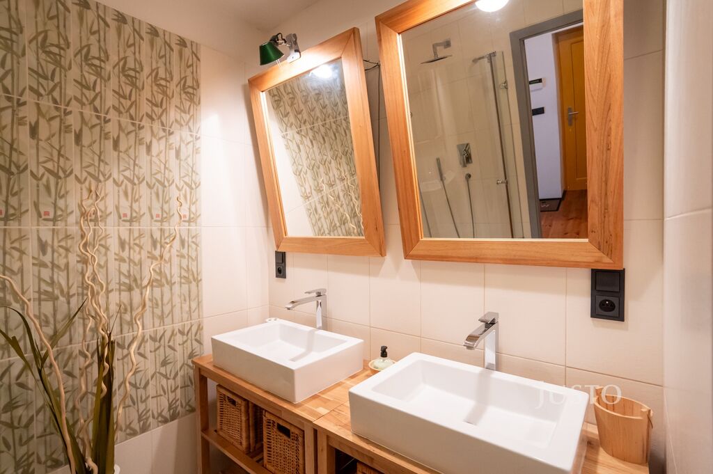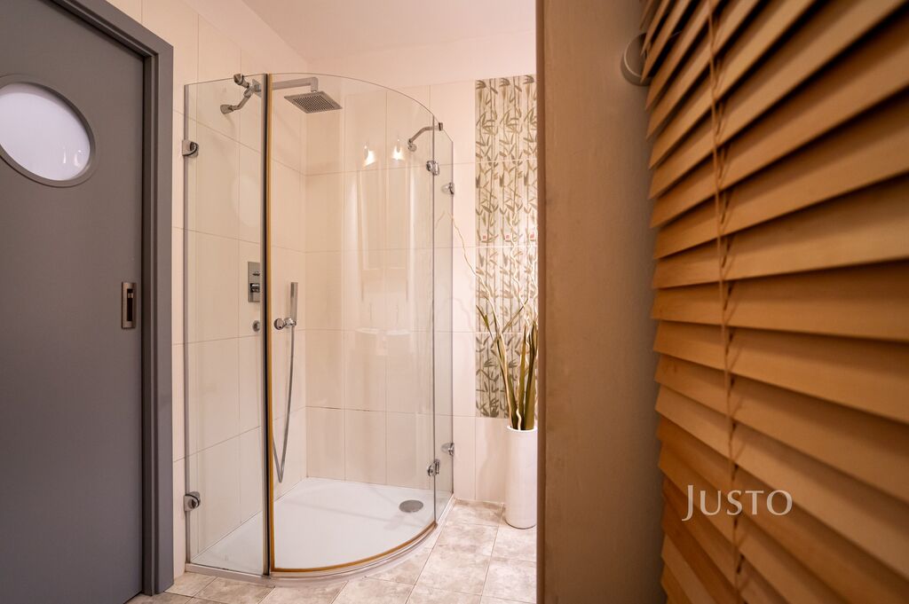 ● Koupelna je vybavena dvojumyvadlem, prostornou sprchou, toaletou a pračkou.