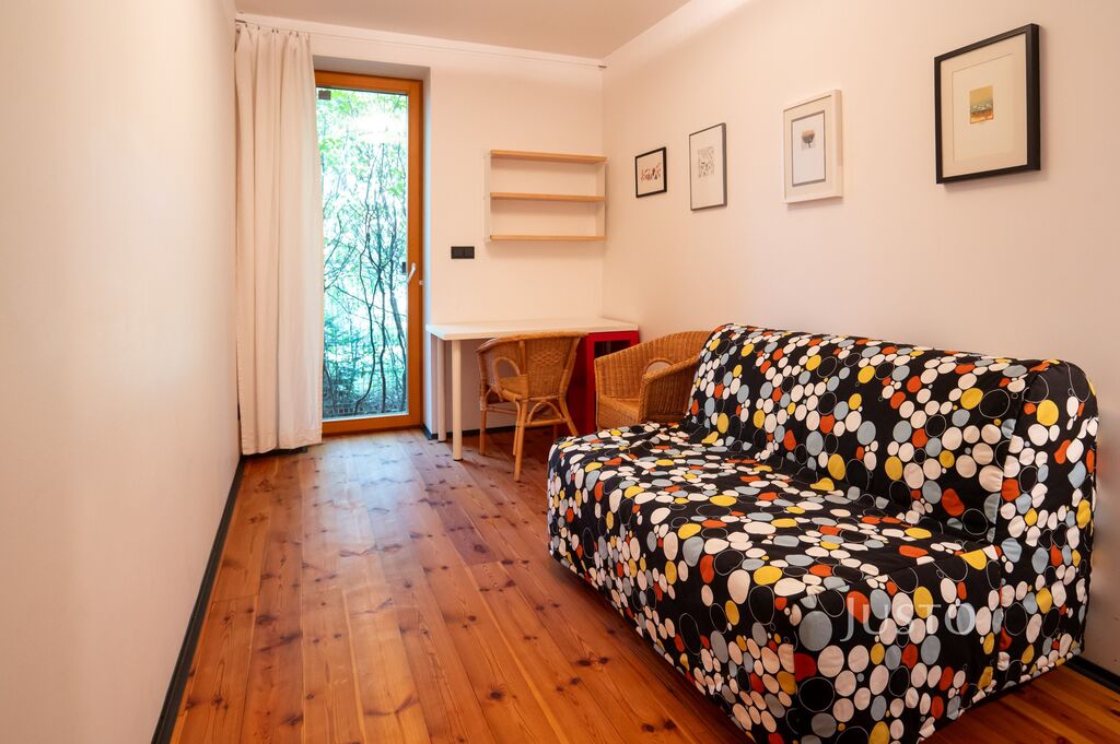 Příjemné klima v domě po celý rok zajišťuje invertorová klimatizace, která funguje na principu tepelného čerpadla – v létě chladí, v zimě topí. O ohřev teplé vody se stará elektrický bojler.