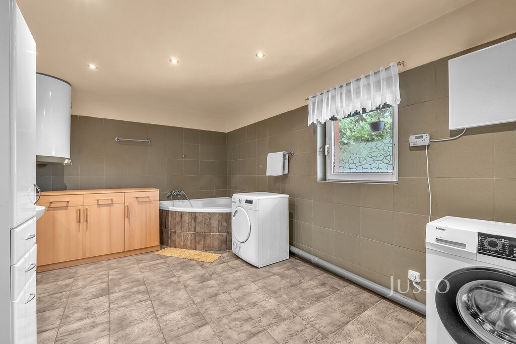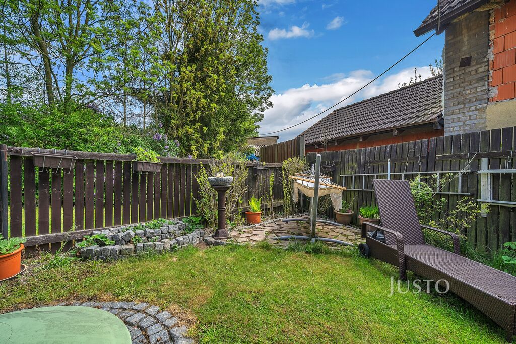 ● Zahrada je menší avšak útulná. Najdete zde úplně vše co je potřeba. Terasu s posezením, odpočinkový kout, prostor na pěstování kytiček i místo na vířivku se najde.