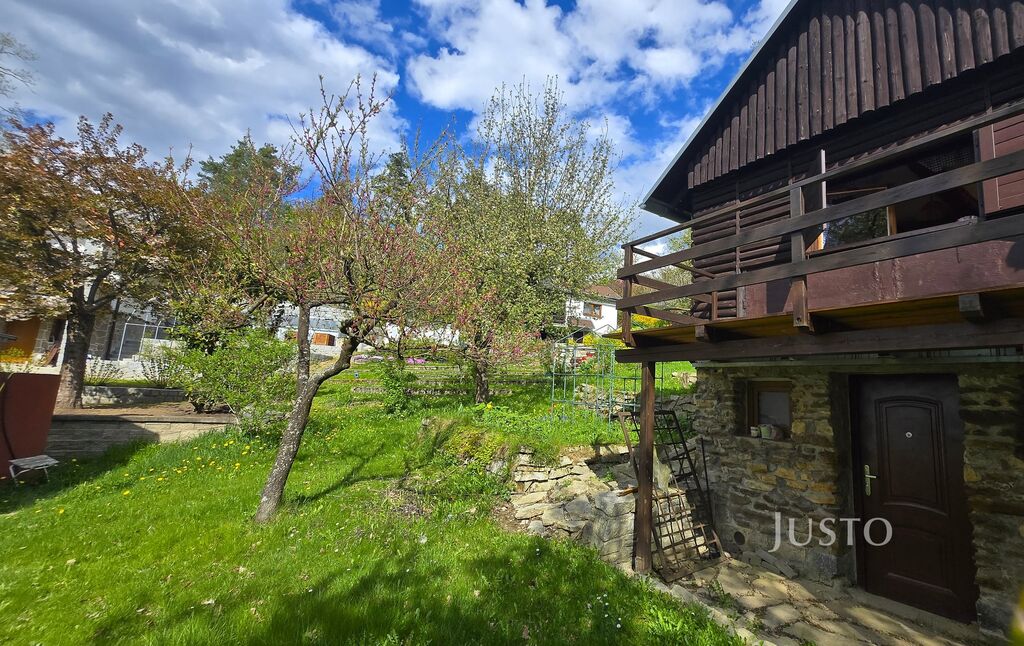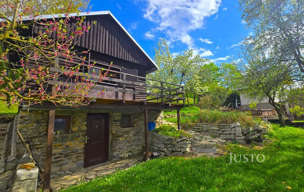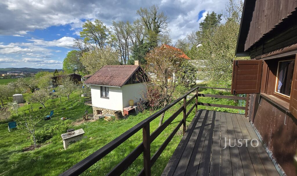 Kolem chaty je terasa s krásným výhledem do krajiny s venkovním posezením.