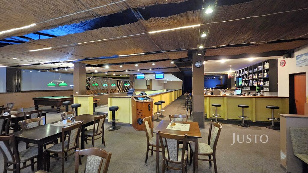 Součástí hlavního prostoru, který o velikosti 576 m² jsou dvě bowlingové dráhy, čtyři kulečníkové stoly, a cca 100 míst na sezení u stolů a na baru. V zadní části se nachází menší taneční parket a toalety pro hosty. U vstupu napravo v hlavním prostoru je pak situován výčep s barem. Na hlavní prostor navazují menší skladové a technické místnosti.