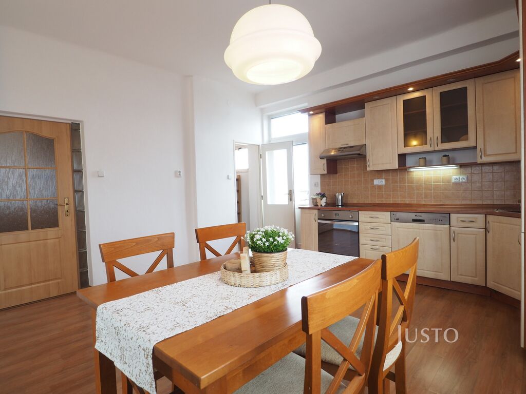 V zastoupení majitele nabízíme k prodeji samostatně stojící dům na okraji obce města Písku v ulici Pražská. Jedná se o stavbu s dispozičním řešení 4+kk s garáží, technickou místností. Momentálně je zde vytápění řešeno plynem, nebo tepelným čerpadlem. Při vstupu do domu se nachází prostorná předsíň, ze které je vstup po dřevěném schodišti do 1.NP, dále do suterénu s koupelnou, kde je sprchový kout a WC, vstup do sklepa a na zahradu. Dominantou domu je prostorná kuchyň, o celkové výměře 21,6 m², kde je možné vytvořit i obývací část. Kuchyň je volně spojena s dalším pokojem a průchozí do ložnice, nebo pracovny. V těchto dvou pokojích jsou protihluková okna s trojsklem. V kuchyní je nenahraditelná spíž o výměře 1,4 m² a vstup na balkon o rozloze 3,6 m². Na patře je samostatné WC s umyvadlem. V podkroví domu je prostorná koupelna o rozloze 16,8 m² s vanou, sprchovým koutem, dvěma umyvadly, toaletou a bidetem. Je zde komfortní podlahové vytápění. Z koupelny i z chodby je vstup do členěného pokoje s vestavnou skříní a komodou, který lze jednoduše rozdělit na dva samostatné pokoje a šatnu. Na pozemku jsou dvě kůlny pro uložení veškerého nářadí, studna cca 14 m hluboká. Parkování vozů je možné v garáži, před domem a vedle domu. Zahrada je udržovaná, zatravněna s ovocnými stromky. Do centra 12 min. chůze, nákupní zóna přes ulici. Ihned k nastěhování. Cena k jednání.