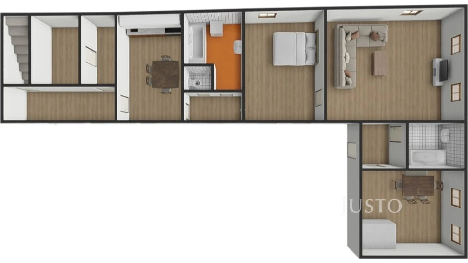 dispozice domu: 4+1, koupelna, toaleta, možnost úpravy na dva menší byty
