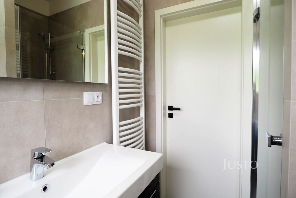 Byt se prodává včetně dokončených zařizovacích prvků – součástí ceny jsou vinylové/dřevěné podlahy, obklady a dlažba, nadstandardní sanitární vybavení GROHE včetně termostatických baterií a přípravy na bidetové WC, interiérové dveře včetně zárubní.