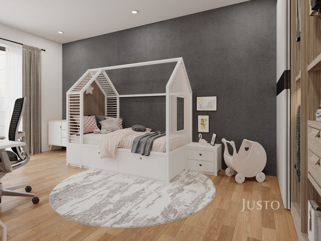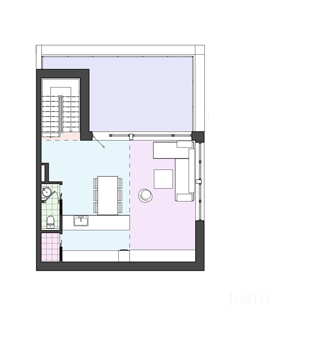 Dispozice 5+kk je řešena velmi prakticky s důrazem na soukromí a pohodlí: