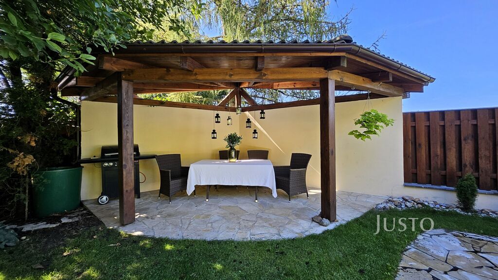Výměra pozemku činí 777 m². Zahrada nabízí soukromí a díky vzrostlé vegetaci je zde i v letních měsících i potřebný stín. Bazén a pergola dotváří příjemný letní kolorit. Podél domu se nachází zděný dřevník s palivem na několik topných sezón.