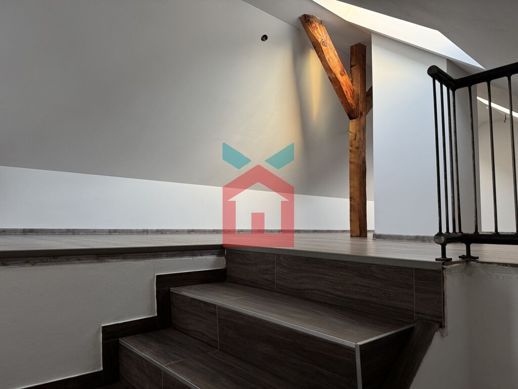 Vstupní chodba na kterou navazuje kuchyně s možností malého obýváku, pokud by někdo potřeboval další dva pokoje v přízemí. Dále je v přízemí koupelna s WC a malý sklep s plynovým kotlem. V mezonetovém patře se nachází obytné podkroví po celé délce domu.