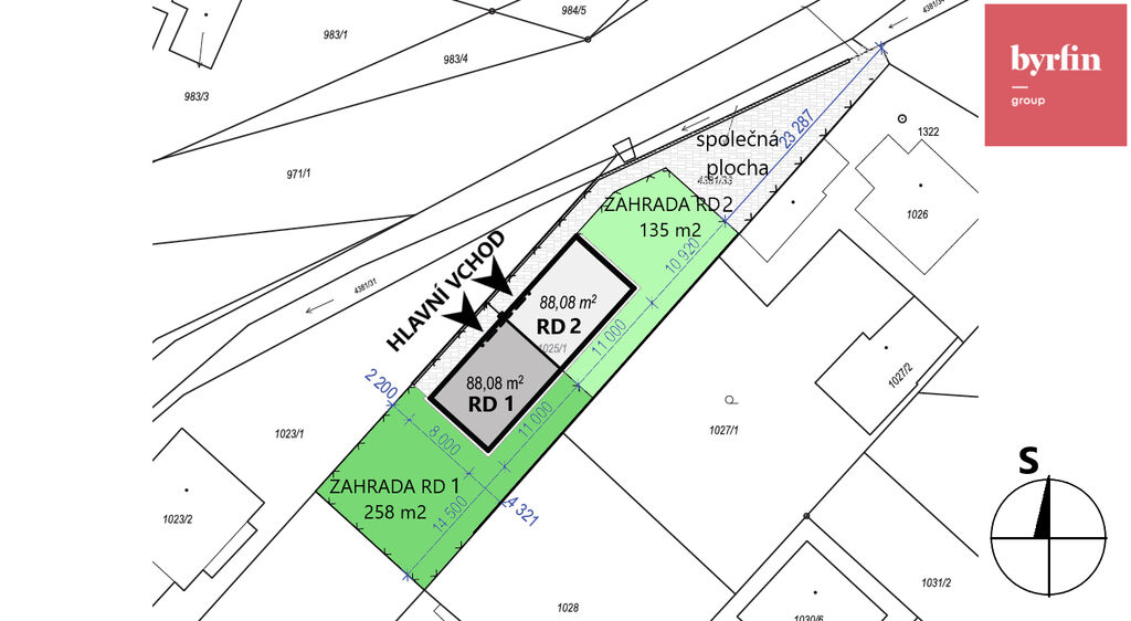 Dům stojí na pozemku o velikosti 369 m², z toho slunná zahrada orientovaná na jihozápad má 281 m² a poskytuje naprosté soukromí.
