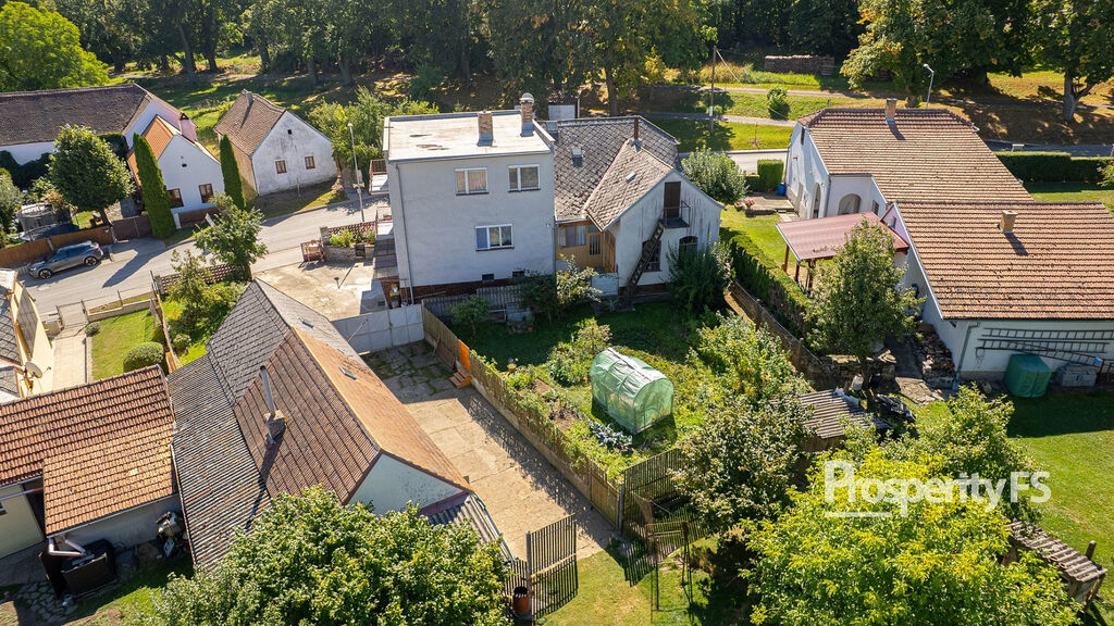 Najdete zde šest samostatných pokojů, prostornou kuchyň a také praktické zázemí v podobě dílny a dalších prostor. K domu patří hospodářské stavení se sklepem a na zahradě stojí samostatná podsklepená chata – celkem tedy dva sklepy.