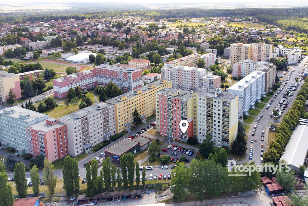 Byt nalézáme v žádané lokalitě Kladno – Rozdělov nedaleko od 12. Základní školy. Nachází se v 1. patře panelového domu s výtahem a bezbariérovým přístupem. Samotný bytový dům prošel rozsáhlou rekonstrukcí v podobě zateplení budovy vč. lodžií, plastových oken s dvojskly, hlavních dveří ovládaných na čip, instalací kamerového systému a v neposlední řadě také vnitřní prostory dostaly moderní kabát.