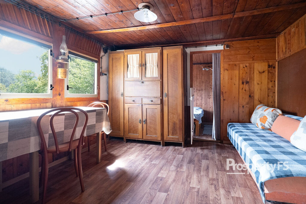 Ve výhradním zastoupení Vám nabízíme zateplenou chatu vhodnou k celoročnímu užívání, o dispozici 2+1 a velikosti 48m². Nachází se na konci obce, v klidné lokalitě v lese, která zaručuje naprosté soukromí a pohodu.