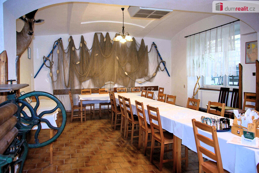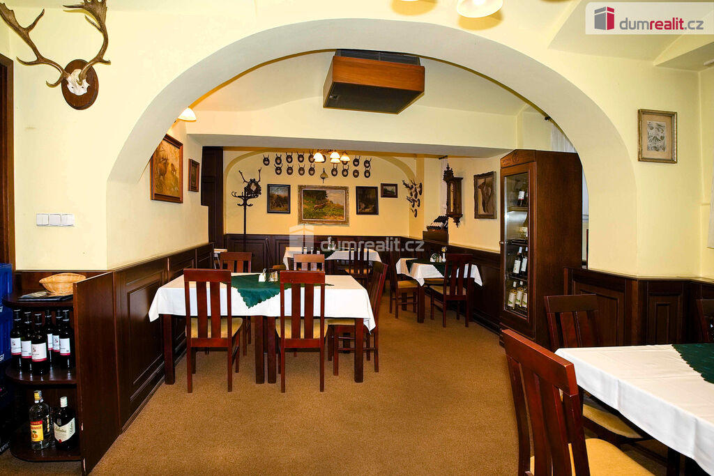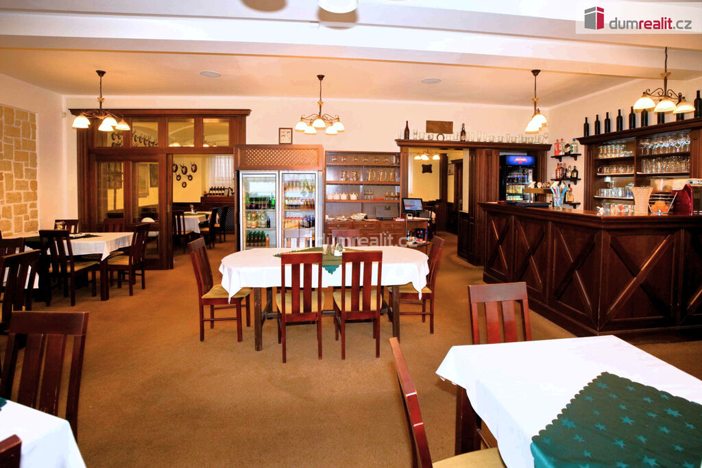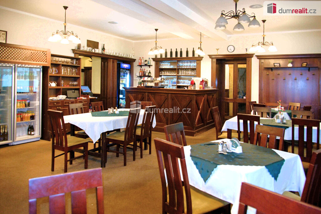 Dumrealit.cz Vám zprostředkuje v exklusivním zastoupení majitele prodej komerčních prostor o ploše 254 m² s možností vybudování bytu, se vkusně zrekonstruovanými interiéry. Dispoziční řešení: od hl. vchodu středem budovy prochází prostorná chodba, která vyúsťuje u zadního vstupu do budovy a je zde umístěn recepční pult. Nalevo od této chodby je hlavní prostor 58 m² s nímž je propojen salonek 33 m². Napravo od centrální chodby je další prostor o velikosti 37 m², který lze využít i pro zcela samostatný provoz/pronájem. Prostory dosud sloužily jako restaurace, proto je další součástí plně vybavená kuchyně o třech místnostech a přiléhající velký chladící box. Ke kuchyni je pak k dispozici další zázemí v podobě velkorysých skaldových prostor, do kterých je přístup i z venkovního prostoru od parkovacích stání za domem pro zásobování. Na konci centrální chodby v zadní části je sociální zařízení. Nemalým bonusem je rovněž řešení vytápění tepelným čerpadlem pro celou prochu nabízených prostor, objekt je napojen na veškeré IS, vč. plynu. Možnost samostatného odkupu dalších prostor v podkroví pro využití k dalším účelům vč. bytu o ploše 160 m². K objektu jsou 2 parkovací místa, která jsou podmínkou pro případnou rekolaudaci na byt - k bytu je nutno 1 parkovací stání.