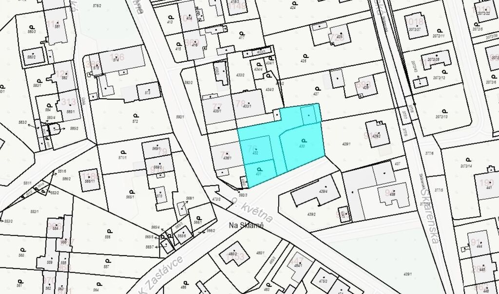 Pozemek je přístupný z obecní komunikace, objekty aktuálně se nacházející na pozemku jsou určeny spíše k demolici.