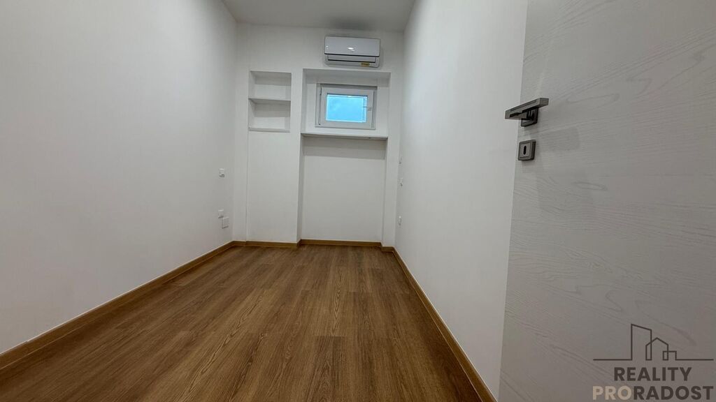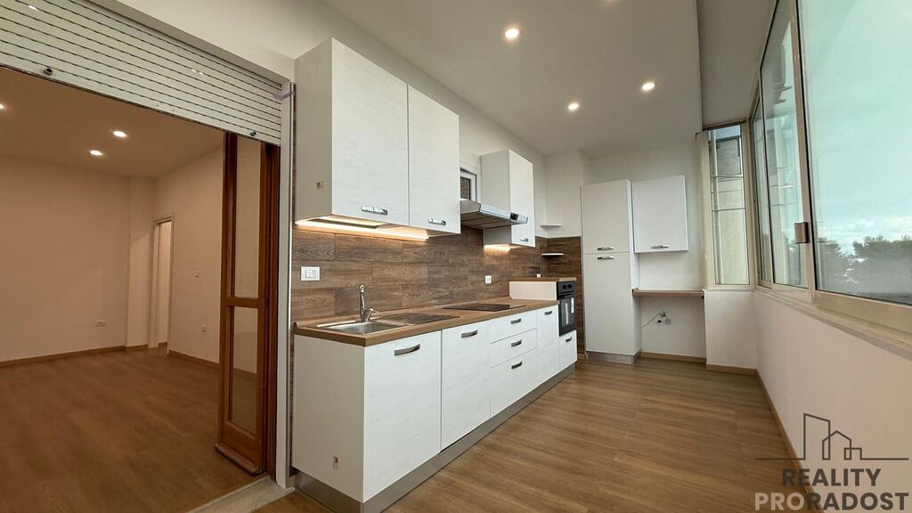 Tento byt prošel kompletní rekonstrukcí, která mu dodala svěžest, moderní charakter a elegantní atmosféru. Z lodžie je částečný výhled na moře, také na zelený parčík přímo před domem, za kterým se nachází písečná pláž.