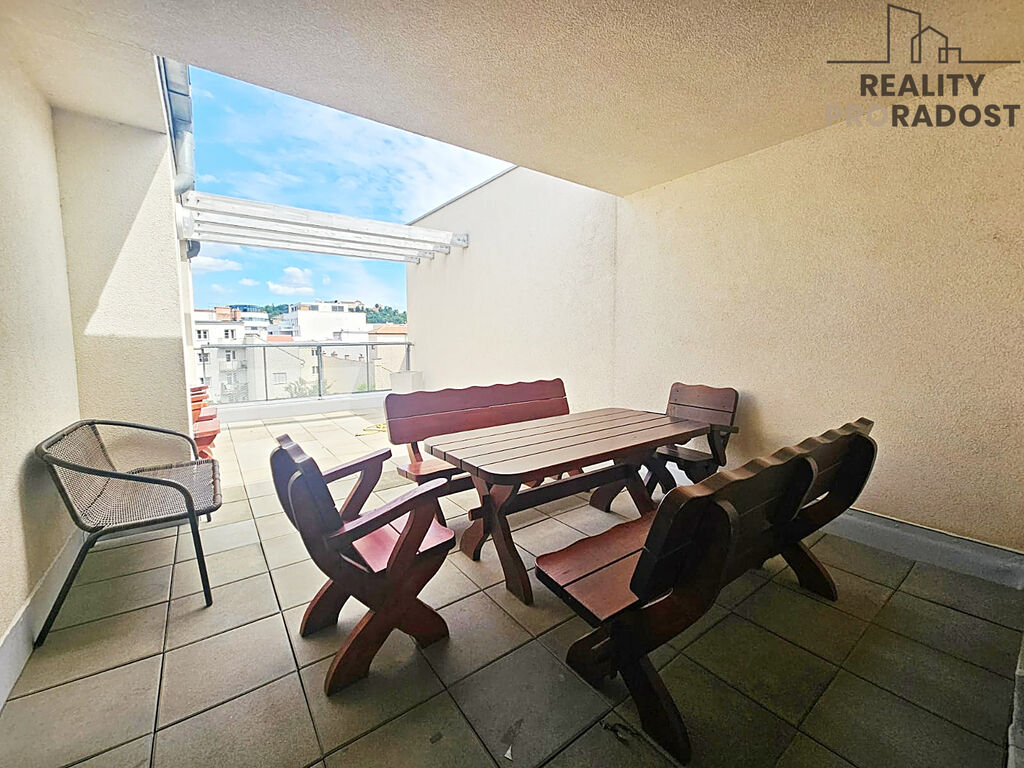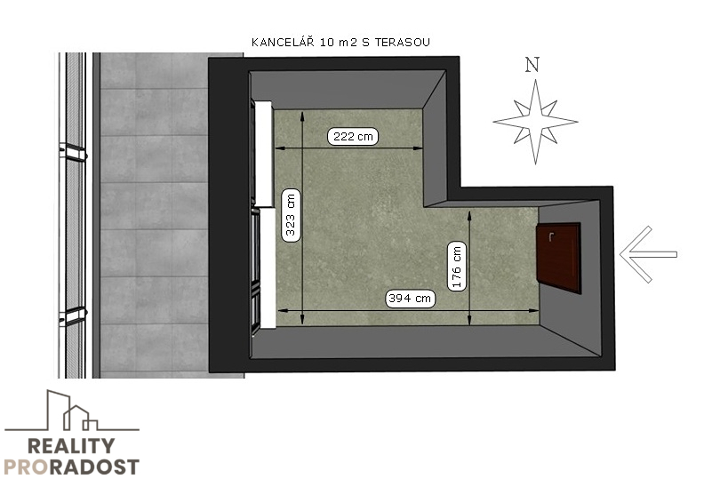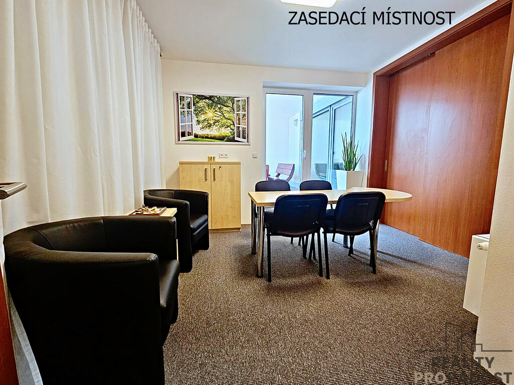 Prostor je ideální např. jako menší administrativní zázemí. Z kanceláře je vstup na terasu s krásným výhledem na Červený kopec.