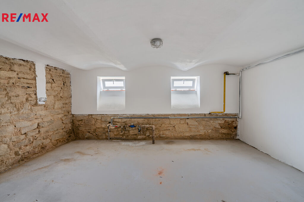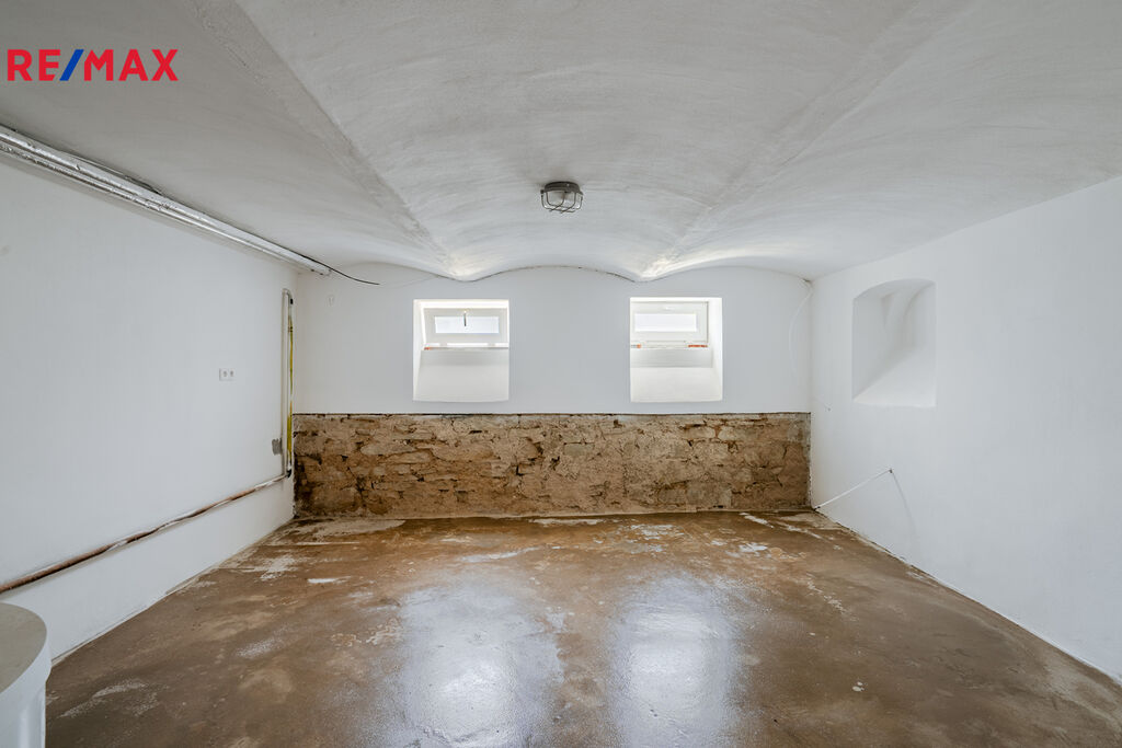 Dům je navíc kompletně podsklepen s plochou sklepních prostor 79 m2. Tyto sklepní prostory rovněž prošly kompletní důkladnou rekonstrukcí a umožňují tak více než jen skladovací a technické využití.