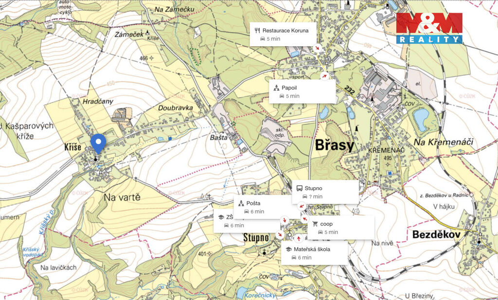 Prodej rodinného domu 4+kk po celkové rekonstrukci v Kříších u Břas. Dispozice domu zahrnuje nejen prostorný obývací pokoj s kuchyní, ale také 2 koupelny, 2 toalety a šatnu přímo u ložnice. Z ložnice je možné vstoupit přímo na zahradu a z obývacího pokoje přes francouzské okno na terasu. Dům prošel kompletní rekonstrukcí, která byla dokončena v roce 2025. Nechybí podlahové topení s digitálními termostaty v místnostech, krb na tuhá paliva v prostorném obývacím pokoji a moderní trojskla v oknech. Voda je dostupná z obecního řadu nebo z vlastní kopané studny. Příprava podkroví umožňuje vybudování dalších pokojů či koupelny. Dům je zateplený a má novou fasádu. Výměra pozemku je nově určená geometrickým plánem. Plzeň je vzdálena pouhých 20 minut jízdy autem, nájezd na D5 je 16 minut, v nedaleké obci Stupno naleznete občanskou vybavenost. Ideální pro rodinu, která hledá klidné bydlení v malé obci s rychlou dostupností do města Plzně či Rokycan. Více informací a domluva prohlídky u makléře
