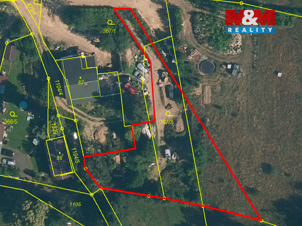 Geometrickým plánem je připraveno oddělení 2 stavebních parcel o plochách cca 1400 a 1870 m2 i pro případné budoucí zhodnocení.