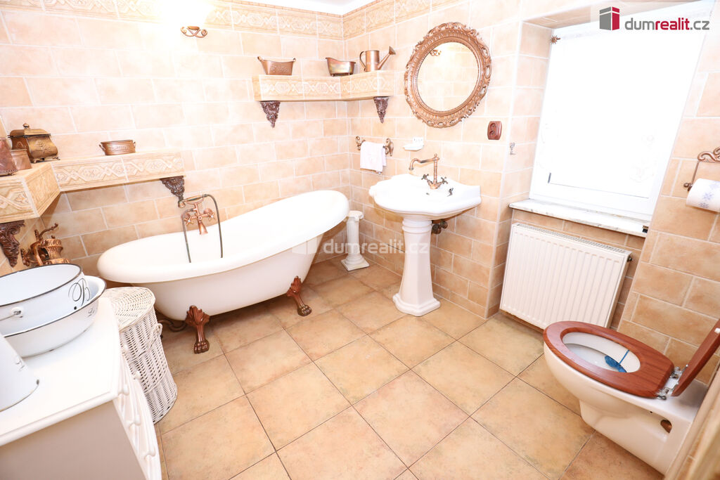 Dumrealit.cz Vám zprostředkuje koupi pěkného rodinného domu s garáží, parkovacím místem, sklepem, terasou a krásnou zahradou v Dolním Rychnově. Kvalitní cihlový dům o třech podlažích obklopuje pozemek o celkové rozloze 686 m² a má celkovou užitnou vnitřní plochu cca 250 m², 21 m² tvoří zahradní samostatný domek se zastřešeným posezením. Dům nabízí dispozici 5+1 s tím, že v přízemí se nachází prostorný obývací pokoj, kuchyně, ložnice s komorou, další menší předpokoj mezi ložnicí a obývákem, předsíň, koupelna s toaletou, dále je zde předsíň a chodba se schodištěm. V prvním patře je další koupelna s toaletou a sprchovým koutem, šatna, velká ložnice a další pokoj odkud je výstup na terasu. Dům je podsklepený, sklep je suchý čistý, je zde umístěný ............. kotel. Pozemek i celkové rozloze 686 m² je ve tvaru delšího obdélníku a skýtá soukromí zahrady za domem dále od ulice. Pěstěná udržovaná zahrada se zámkovou dlažbou skrývá zahradní domek, který je velmi útulný a je vybavený kuchyňskou linkou, sedacím nábytkem a nezávislým topením - kamny na pevný otop. Praktická je venkovní toaleta umístěná za garáží. V rámci postupné rekonstrukce se v domě dokončila nová elektroinstalace, vodoinstalace, odpady, rozvody topení, střecha, fasáda. Nové jsou také podlahy, omítky, štuky, plastová okna, koupelna a kuchyně. Budova je zateplená ..............i ze ............... Cihlový dům vytápí ................ kotel se zásobníkem na teplou vodu, komín byl ........... vyvložkovaný. Dům je napojen na všechny inženýrské sítě včetně kanalizace, vody, elektřiny a plynu. Co se parkování týče, je k dispozici velká garáž, další dvě parkovací místa jsou před garáží v dlouhém vjezdu a před domem. Dům se nachází 5 minut jízdy od Sokolova, kde je veškerá občanská vybavenost a dostatek pracovních příležitostí, přesto i v Dolním Rychnově je obecní úřad, pošta, potraviny, restaurace, samozřejmě je zde zastávka MHD. Nemovitost je umístěna v příjemné ulici a nabízí kombinaci moderního bydlení a klidného prostředí, je zde dostatek úložného prostoru a klid pro každého člena rodiny. Cena zahrnuje veškeré právní služby a provizi RK. V případě zájmu Vám rádi doporučíme naše prověřené hypoteční poradce. Ev. číslo: 652838.