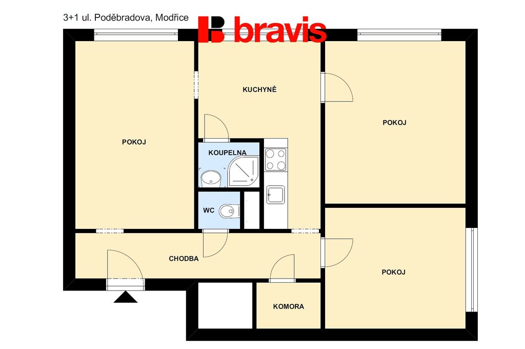 Ve výhradním zastoupení majitele nabízíme pronájem bytu 3+1 v Modřicích u Brna na ul. Poděbradova.