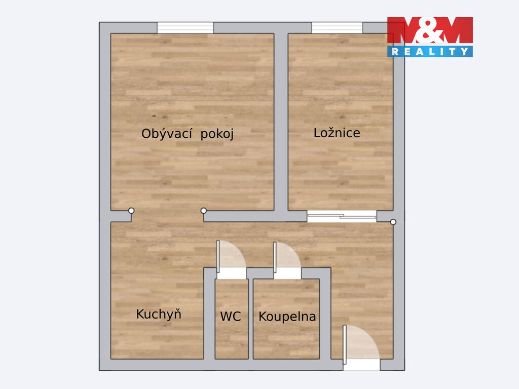 Dispozice bytu nabízí obývací pokoj s kuchyňským koutem, ložnici, předsíň, koupelnu a wc. Díky své velikosti je vhodný jak pro jednotlivce, mladý pár, tak i jako investice.