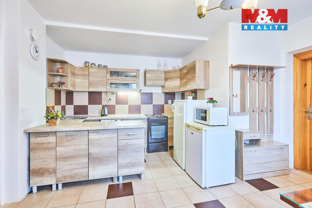 Nabízíme na prodej prostorný, částečně podsklepený rodinný dům v Bernarticích u Písku o rozloze 890 m². Dvě bytové jednotky nabízí možnost dvougeneračního bydlení, ale i zároveň bydlení pro jednu rodinu. V přízemí domu se nachází bytová jednotka, která byla nedávno zrekonstruována, o prostorné dispozici 2+kk se sociálním zařízením a s novými okny. V prvním patře je bytová jednotka o dispozici 3+1 s vlastním sociálním zařízením. Zastavěná plocha domu je cca 100 m² plus patro, plocha garáže cca 30 m². Dům je napojen na veřejný vodovod a kanalizaci, elektřina 220/380 V. Možnost parkování před domem, v průjezdu a nebo v garáži s montážní jámou. Nemovitost je z jedné strany přístupná jak ze silnice, tak z druhé strany ze zahrady z obecní komunikace. Je možnost čerpat dotace Oprav dům po babičce, ale i z jiných aktuálních dotačních programů. Zajistíme Vám od nového roku dostupnější financování. Více informací Vám rádi poskytneme v RK.