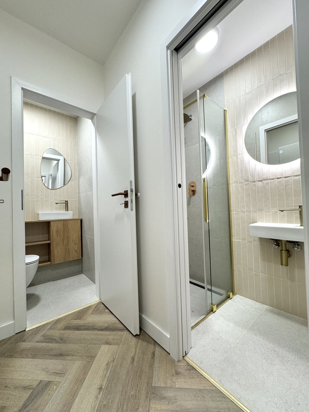 V bytě byly nově zhotoveny podlahy, provedeny obklady a dlažby a zároveň došlo k výměně elektroinstalace, vodovodních a odpadních rozvodů. Součástí vybavení je moderní kuchyňská sestava včetně spotřebičů, na které se stále vztahuje záruční lhůta. Komfort zajišťují dvě koupelny – jedna se sprchovým koutem a toaletou, druhá s vanou a samostatnou toaletou. V koupelnách je pro maximální komfort instalováno podlahové vytápění. Ostatní místnosti jsou vytápěny centrálně a teplá voda je zajišťována centrálním systémem.